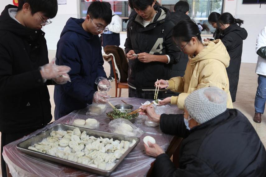 活动当天,志愿者们早早地来到了福利院,布置场地、准备食材,各项工作有条不紊。在温馨的氛围中,志愿者与老人们一同包饺子、亲切交谈,了解老人的生活状况和身体情况,并从饺子的来历,不同民族、不同地区饺子的叫法、做法,聊到各民族的传统节日,现场其乐融融。饺子出锅后,志愿者们同工作人员前去居住楼,亲手给老人送上热气腾腾的饺子,为寒冷的冬日增添许多生机与活力。