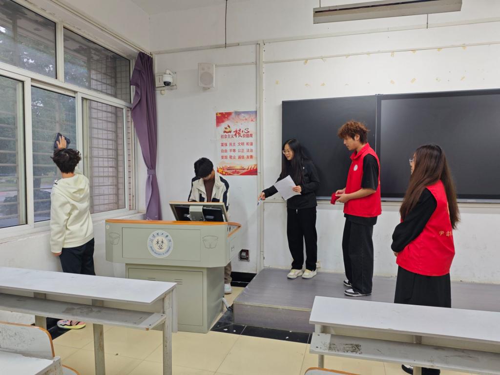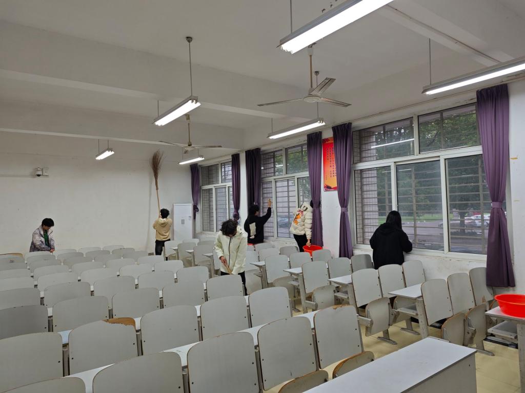 志愿者们分工明确,细致全面清洁B1栋教学楼,使教室环境焕然一新。