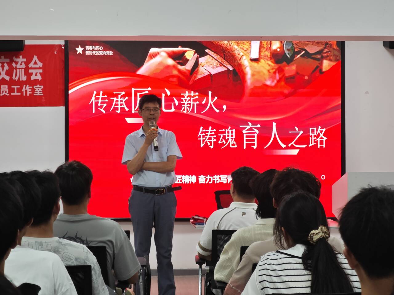 在活动现场,我院学生代表生动讲述三位大国工匠的实践故事。胡双钱,36 年如一日坚守航空零件手工制造,以 0.02 毫米的极致精度,雕琢着大国重器的细微之处;董礼涛,在 6000℃弧光的炙烤下,凭借超凡技艺铸就“镜面焊”神话,赋予金属以艺术之美;张帅坤,运用拓扑学智慧,在卵石地层掘进难题中披荆斩棘,为工程建设开拓新径,让中国盾构机领跑世界。
