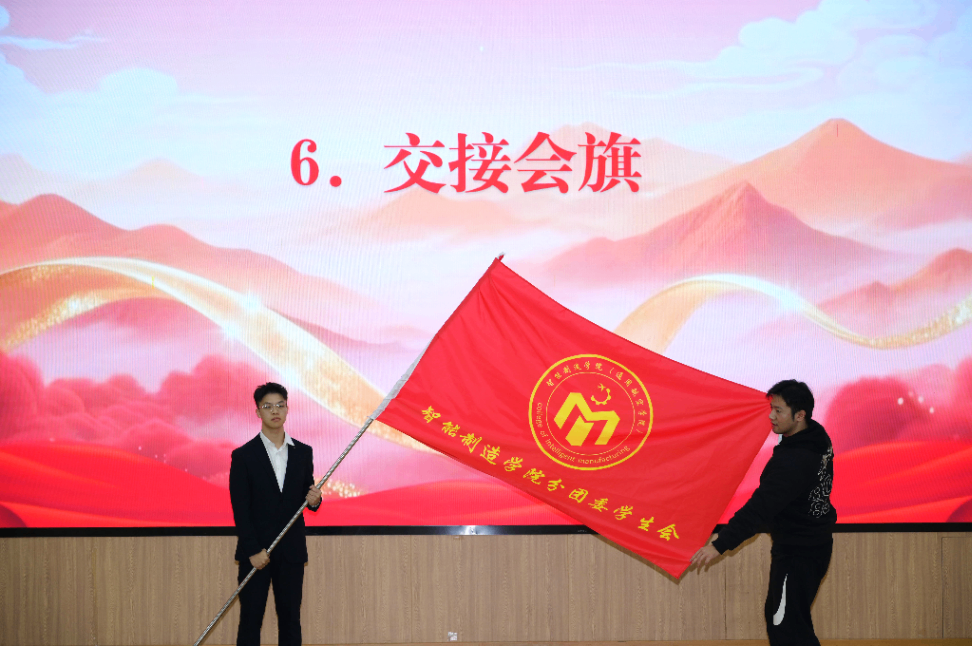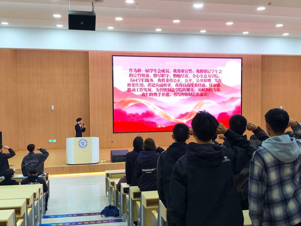在庄重的会旗交接仪式中,完成了责任与使命的传承。新一届全体成员佩戴会牌,在新一届学生会主席杜崇业的带领下集体宣誓,展现出昂扬奋发的精神风貌。