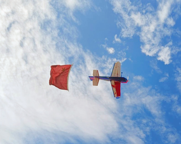 活动在文园和听涛操场进行。飞行操作员以精准的控制和高难度特技充分展示航模飞行的魅力。看着自己亲手制作的航模,披挂着鲜艳的五星红旗,在蓝天中自由翱翔,在场的师生们非常激动,一股强烈的自豪感和使命感在心中油然而生。