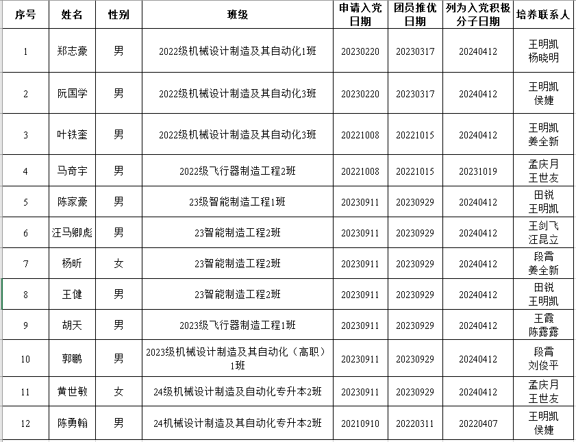 经支部委员会研究,报校党委备案同意,将郑志豪等十二位同志列为发展对象。现将郑志豪等十二位同志有关情况公示如下: